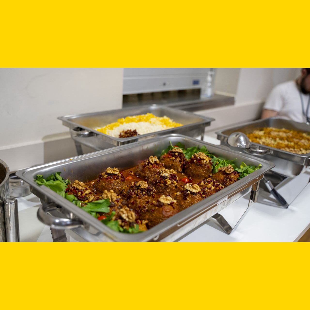*غذاهای اصیل ایرانی ازجمله پلو و خورش فسنجان، کوفته تبریزی و حلیم بادمجان شیرازی برای فروش توسط سازمان فراسوی محدودیت.